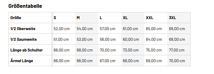 Größen: S, M, L , XL, XXL und 3XL